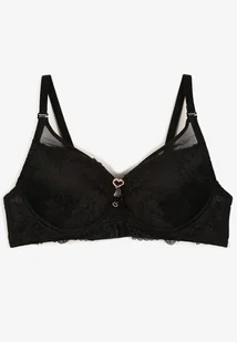 Czarny Biustonosz Ozdobiony Koronką i Transparentnymi Wstawkami Temindara