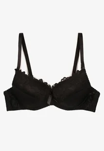 Czarny Biustonosz Push Up z Koronkowym Wzorem Lanovinea