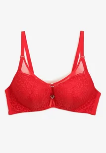 Czerwony Biustonosz Koronkowy Typu Push-Up z Metalową Ozdobą Chrissty