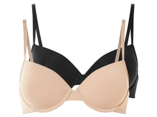 esmara® Biustonosze typu T-shirt, 2 szt., z miseczkami usztywnianymi (Czarny/ beżowy, 85C)