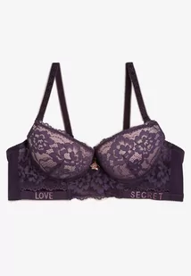 Fioletowy Biustonosz Push-Up Ozdobiony Koronką i Napisami z Cekinami Elisei