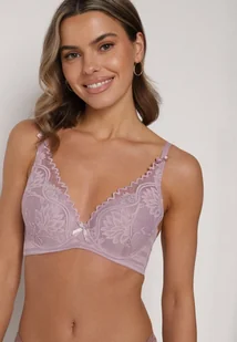 Fioletowy Koronkowy Biustonosz z Ozdobnymi Kokardkami na Ramiączkach Aeleolopei