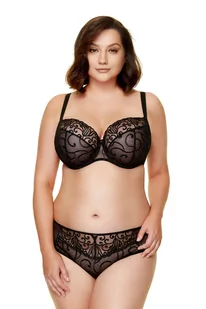 Gorteks Lara-B2 miękki biustonosz z fiszbinami, biustonosz z siateczki, komfort – 75E, czarny, czarny, 75E