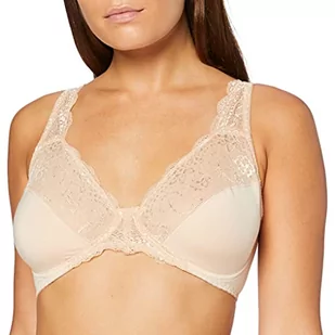 FM London Damski biustonosz z miękkimi miseczkami z mikrofibry, fiszbiny, bez wyściółki, koronkowy, CIELISTY, 75D