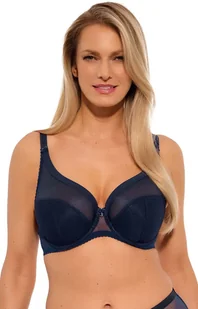 Gaia biustonosz półusztywniany semi-soft granatowy Sonia Art. 1058 o konstrukcji SS5 w przepięknej granatowej wersji kolorystycznej. Elegancki biustonosz z miseczką wyciągniętą do ramiączka, nieco bardziej sportowy charakter, utrzymany w klasycznej stylistyce. Cała miseczka z granatowej dzianiny w paski. Plecy całe, z Lycry w kolorze granatowym.