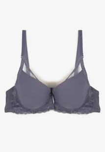 Granatowo-Szary Biustonosz Ozdobiony Transparentnymi Wstawkami i Koronką Nelrith