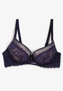 Granatowy Biustonosz z Koronką Typu Push-Up Selovia