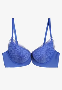 Biustonosz Ecrulia z usztywnianymi miseczkami. Zapinany z tyłu na haftki. Regulowane ramiączka. Dekorowany kobiecą siateczką oraz metalową zawieszką przy dekolcie.