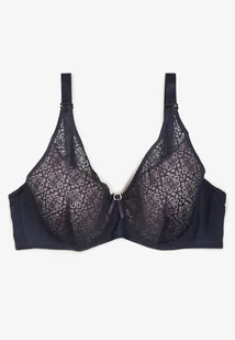 Granatowy Koronkowy Biustonosz Full Cup z Ozdobnymi Cyrkoniami na Kokardce Nikoriana