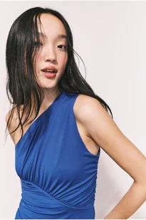Body thong z miękkiego dżerseju. Jedno szerokie ramiączko. Marszczone szwy z przodu, z boku i na ramieniu tworzą efekt lekkiego drapowania. Kryte zatrzaski w kroku.