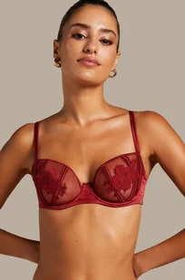 Biustonosz Ember to oszałamiające połączenie subtelności i wyrafinowania. Ta elegancka balkonetka jest ozdobiona delikatnym haftem i pięknym prześwitującym materiałem. Wzbogać swoją kolekcję bielizny o to arcydzieło i połącz je z pasującymi figami lub stringami Ember, aby uzyskać zniewalający wygląd! Część kolekcji Noir. Niewyściełany Miseczki z fiszbinami Koronka Kolekcja Noir