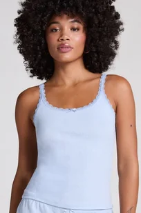Postaw na naturalny urok z naszym podkoszulkiem, który stanowi idealne połączenie kobiecości i wygody. Wykonany z miękkiej tkaniny pointelle, ten podkoszulek charakteryzuje się delikatnym, teksturowanym wzorem, który dodaje mu subtelnej elegancji. Koronkowe detale wzdłuż dekoltu dodają romantycznego akcentu. Cienkie ramiączka Okrągły dekolt Koronka Kokardka