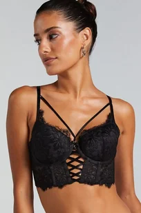Ten biustonosz typu longline łączy w sobie elegancję i odważny styl. Delikatne ramiączka, odpinany naszyjnik z ramiączek i błyszczące kryształki sprawiają, że ten biustonosz na pewno zwróci uwagę. Subtelna kokardka z ozdobą w postaci klejnotu zdobi środek, a miseczki z dodatkowym wypełnieniem push-up zapewniają dodatkową podporę i uniesienie. Wyściełany Regulowane ramiączka Miseczki z fiszbinami Odpinane ramiączka zapinane na karku Koronka