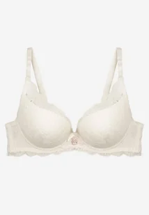 Jasnobeżowy Koronkowy Biustonosz na Regulowanych Ramiączkach z Usztywnianymi Miseczkami Zapinany z Tyłu na Haftki Wloena