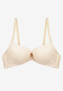 Jasnobeżowy Koronkowy Biustonosz Push Up Ozdobiony Metaliczną Aplikacją Norithiel