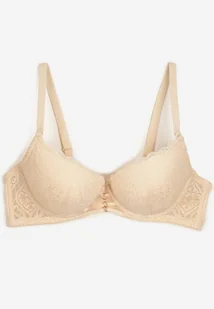 Jasnobeżowy Koronkowy Biustonosz Typu Push Up Zapinany na Haftki Maileen