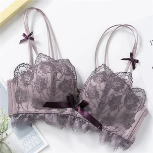 Wspaniały Biustonosz Push Up Koronki Tiul Fioletowy, Fioletowy/Liliowy, 100B