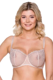 Klasyczny elegancki biustonoszmiękkie miseczkidruty i fiszbiny boczne podtrzymują i kształtują piersimiseczki pokrywa delikatny kwiatowy haftramiączka regulowane, nieodpinanezapinany z tyłu na haftkiDo kompletu polecamy figi 148. Skład: 85% poliamid, 15% elastan.