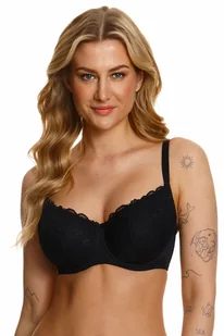 Kobiecy usztywniany biustonosz dla Pań z dużym biustem. miseczki pokryte są koronkąwewnętrzna strona miski podszyta bawełnąmostek oraz tył wykonane są z gładkiego materiałumiędzy miseczkami malutka kokardkakonstrukcja z dwoma cięciami pionowymipionowe fiszbiny boczneramiączka regulowane, nieodpinanezapięcie z tyłu na haftkiszerokość ramiączek i typ zapięcia dopasowany do rozmiaru biustonoszaDo kompletu polecamy majtki 151-52 lub 152. Skład: 70% poliamid, 20% elastan, 10% bawełna.
