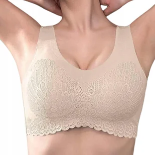 Miękki wygodny biustonosz bezszwowy stanik sportowy fitness top beżowy s 36