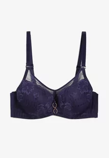 Granatowy Koronkowy Biustonosz z Usztywnianymi Miseczkami i Odpinanymi Ramiączkami Christial