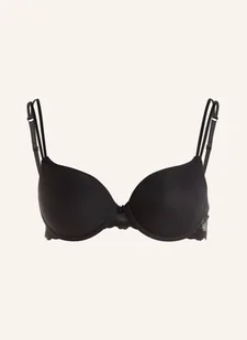 Miseczki z wypełnieniem. Zintegrowane fiszbiny. Bez fiszbin bocznych. Szeroki mostek z kwiatową aplikacją. Regulowane cienkie ramiączka.