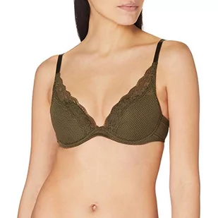 Passionata - Brooklyn biustonosz typu plunge, nowoczesne wzornictwo z graficznym tiulem, głęboki dekolt, miękkie i ultralekkie miseczki – niewidoczny pod ubraniem, khaki, 65D