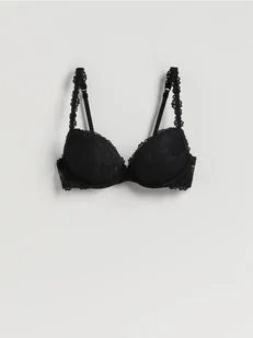 Biustonosz o klasycznej formie, wykonany z dzianiny z koronką.