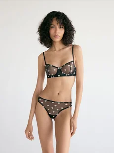Reserved - Siateczkowy biustonosz z haftem - czarny