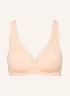 Miękki biustonosz bez fiszbin BODY ADAPT Twist T-shirt wyróżnia się rewolucyjną technologią żelową, dzięki której stale dopasowuje się do ciała. Podwójnie formowane, dopasowujące się miseczki z wymiennymi wkładkami. Biustonosz zapewnia mocne wsparcie. Wyjątkowo miękka mikrofibra z delikatną siateczkową lamówką. Płaskie brzegi zostały wycięte laserowo. Flokowana linia silikonowa zapewnia swobodę bez fiszbinów. A to wszystko w cudownie letnim, morelowym kolorze.
