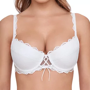 SUSA Wiesn-Magiczny biustonosz Dirndl z fiszbinami, biustonosz push-up z koronką żakardową I biustonosz dla zapierającego dech w piersiach dekoltu z wyrafinowanym sznurowaniem w mostku, biały, 85D