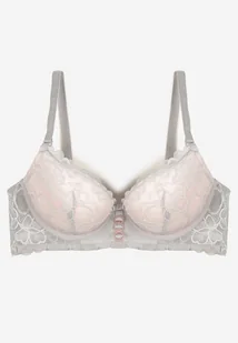 Szary Biustonosz Push Up Ozdobiony Koronką Neavia