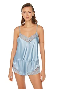 Trendyol Damski gładki średni tkany stanik - zestaw piżam szortów, NIEBIESKI, 64