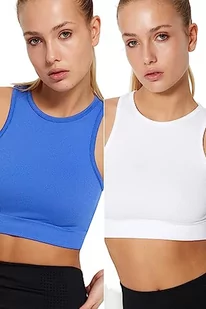Trendyol Damski sportowy biustonosz sportowy z wyciętym wiązaniem na szyi, biało-niebieski, XS/S, Biało-niebieski, XS-S
