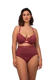 Ulla Popken Biustonosz damski z fiszbinami, miękka miseczka, koronka, zapięcie z przodu, karminowoczerwony, 110D