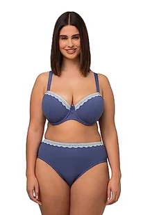 Ulla Popken Damskie fiszbiny, koronka, prążkowany dżersej, miękkie miseczki, biustonosz B-D, niebieski (Atlanikblau), 90D
