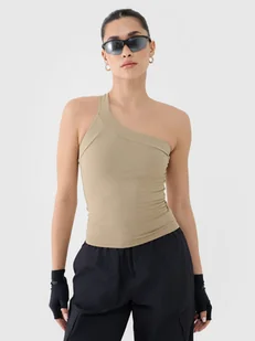 Top bez rękawów damski - CECHY: gramatura: 220 gsm zakres rozmiarów: XS-L krój: slim, który dopasowuje się do sylwetki dekolt z asymetrycznym ramiączkiem wykonana z materiału syntetycznego, który zapewnia trwałość i jest łatwy w pielęgnacji rozciągliwy materiał dzięki dodatkowi elastanu (17%) jednolita kolorystyka pasująca do wielu stylizacji gładka w dotyku, miękka i elastyczna dzianina ze splotem interlock pojedyncze, asymetryczne ramiączko