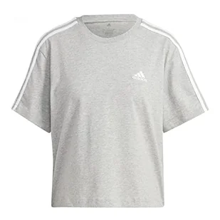 adidas Damski T-shirt (Short Sleeve) W 3S Cr Top, Medium Grey Heather/White, HR4916, XL