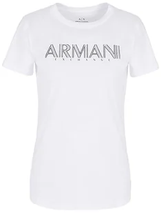 Armani Exchange Damska koszulka bawełniana z dżerseju, dopasowane, logo, biały, XL
