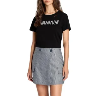 Armani Exchange Damska koszulka bawełniana z dżerseju, dopasowane, logo, czarny, M