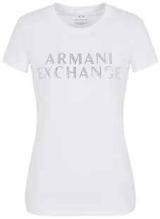 Armani Exchange Damska koszulka Slim Fit Stretch Cotton Embellished Logo Fitted Tee T-Shirt, biały, L