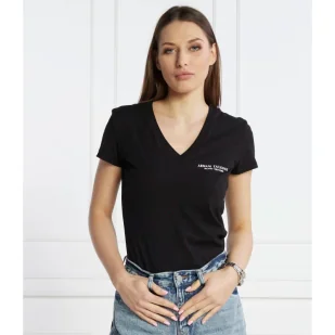 Armani Exchange Damska koszulka Slim Fit Stretch Cotton Embellished Logo Fitted Tee T-Shirt, czarny, XS