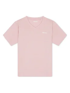 Koszulka "Bellatrix" w kolorze jasnoróżowym - czysta bawełna - dekolt: V - krój: prosty - look: jednokolorowy - nadruk: logo