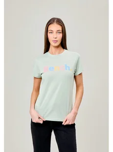 Koszulka "Elio" w kolorze zielonym - czysta bawełna - dekolt: okrągły - krój: prosty - look: jednokolorowy - nadruk: logo