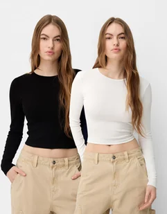 Bershka Dwupak Koszulek Z Długim Rękawem I Okrągłym Dekoltem Kobieta M Wielokolorowy