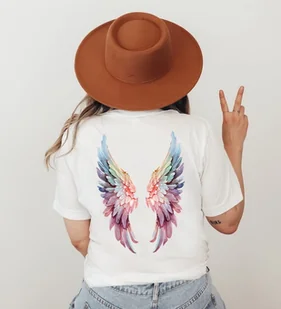 Damska biała koszulka z nadrukiem. Koszulka dostępna w dwóch rozmiarach. Rozmiar S z metki polecamy dla osób noszących standardowo S lub M Szerokość: 46 cm pod pachami oraz długość 67 cm ROZMIAR M z metki polecamy dla osób noszących rozmiar L/XL Szerokość 51,5 cm pod pachami oraz długość 68 cm. Koszulki bardzo dobrze wyglądają ze spodniami/spodenkami w wersji wciągniętej w spodnie lub częściowo wciągniętej w spodnie.