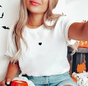 biała koszulka z czarnym małym serduszkiem
