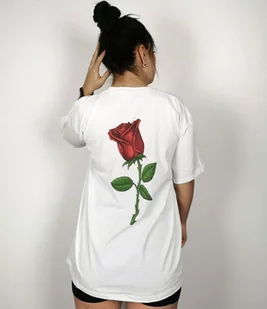 T-shirt oversize o modnym luźnym kroju. z wyjątkową grafiką . Koszulka wykonana z bawełny. Modelka na zdjęciu ma na sobie rozmiar M T-shirt Oversize zaprojektowane tak, aby pasowały do każdej kobiecej figury i nie dodawały jej optycznie dodatkowych kilogramów. Oversize to wyjątkowo modny styl, dzięki któremu możesz stworzyć wiele stylizacji - tworząc casualowy, biurowy, jak i elegancki outfit
