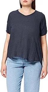 Bonateks, Bi-Material Top z dekoltem w serek, fałdami na plecach i krótkimi rękawami, 100% len, rozmiar DE:34, rozmiar US:S, topy, granatowe - wyprodukowano we Włoszech, niebieski, 34