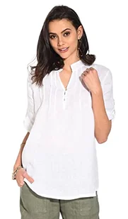 Bonateks damska top 100% lniana tunika Made in Italy, top zapinany na guziki z kołnierzem tunezyjskim i składanymi z przodu, biała, rozmiar: XL, biały, XL